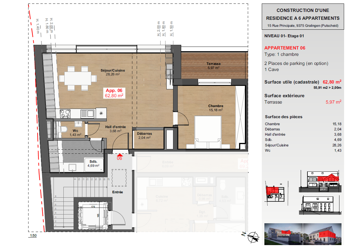 🌟 VEFA.LU, votre partenaire de confiance, a le plaisir de vous proposer en exclusivité un appartement en future construction dans une nouvelle résidence proposant au total 6 appartements répartis sur trois niveaux situé au 15, rue Principale à Gralingen.