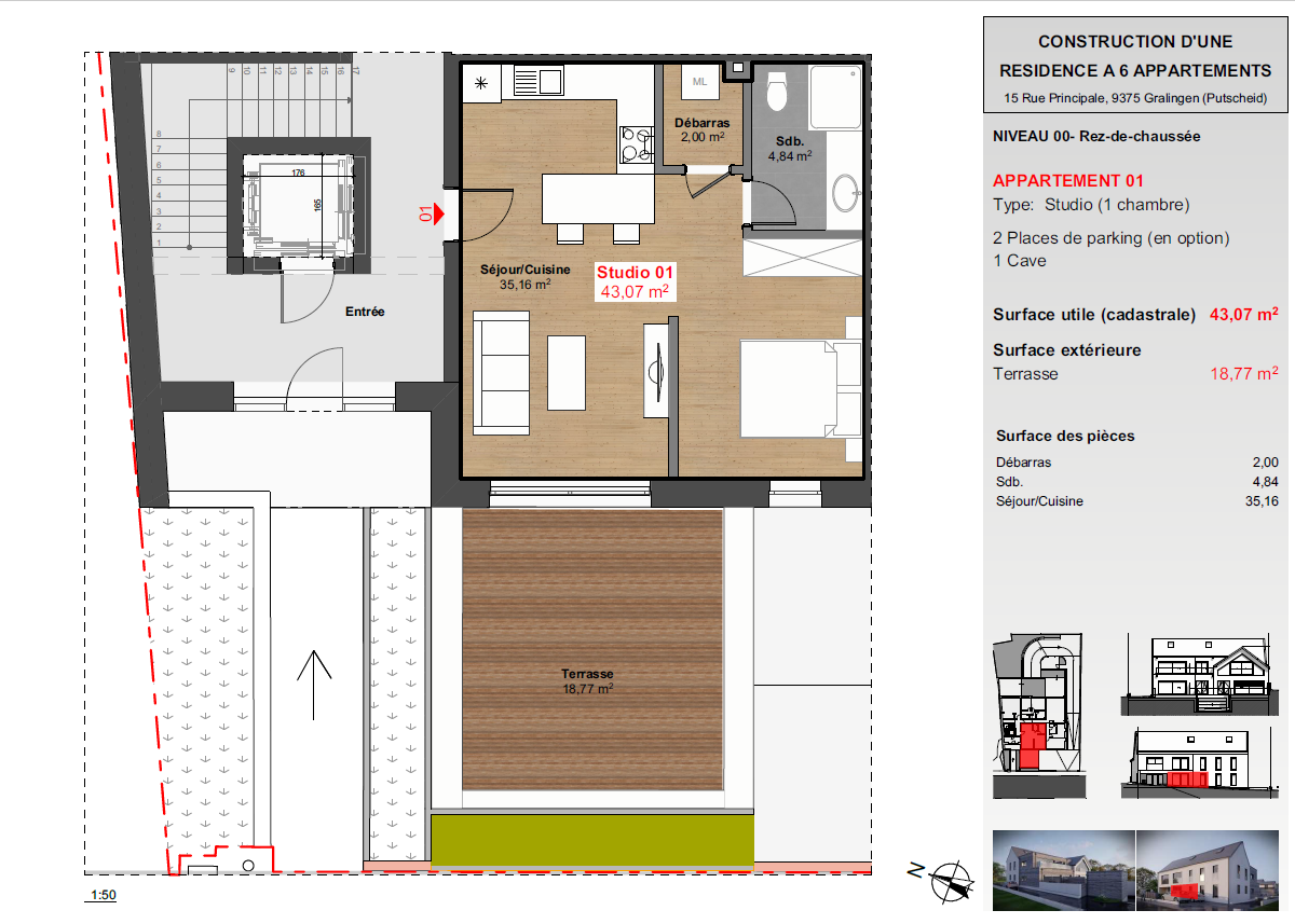 🌟 VEFA.LU, votre partenaire de confiance, a le plaisir de vous proposer en exclusivité un studio en future construction dans une nouvelle résidence proposant au total 6 appartements répartis sur trois niveaux situé au 15, rue Principale à Gralingen.